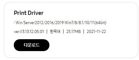 윈도우(Window) 프린터 드라이버는 아래의 다운로드 버튼을 클릭하시면 다운로드하실 수 있습니다.