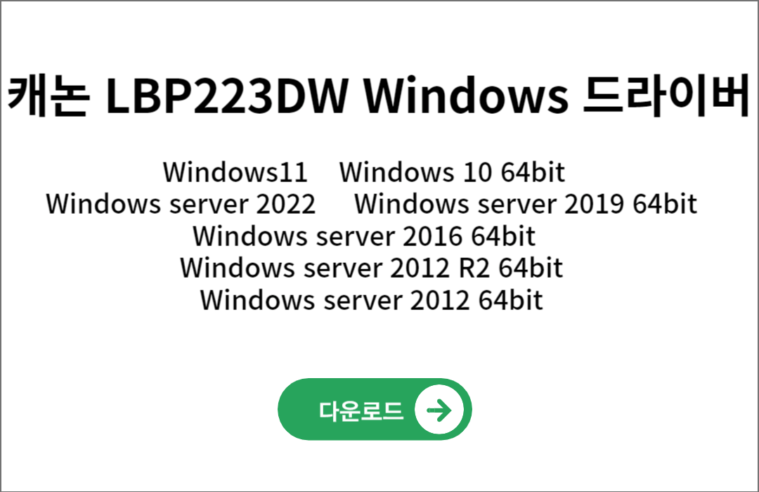 캐논 흑백 레이저 프린터 드라이버는 원도우 용(Window), 맥 용(Mac) 최신용 프린트 드라이버를 바로 다운로드설치 할 수 있습니다.